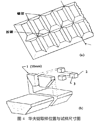 ( a) ———取出一塊小塊;(b)———1———10mm 厚的 切片;2———10mm3 的截塊;3———檢驗表面