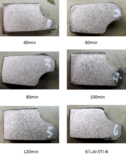 ԇCAlTi5C0.2ڑ(yng)XϽ𣨸߹裩2뼴Ͻ(x)6댦Ͻ(x)Чã(x)rg120犃(ni)cͬʵAl-5Ti-1Bȣ(x)rg30犃(ni)ЧԺãXҺмAlTi5C0.2m(x)2Сr(x)Чo@˥
